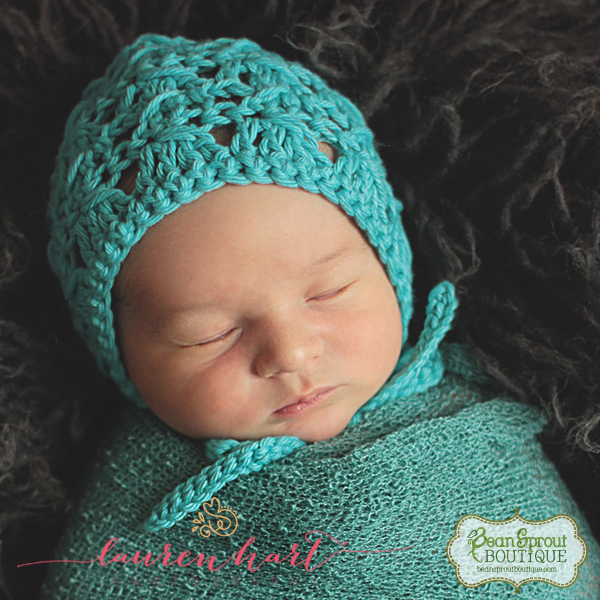 This crochet bonnet has wonderful texture. Great photography prop or for everyday wear. Soft and comfortable. Available in many choices of color.