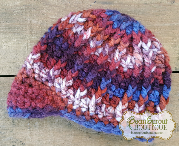 This hat was created from a pattern by Crochet by Jennifer at www.crochetbyjennifer.com.