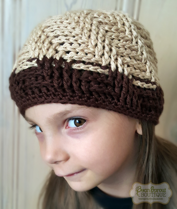 This hat was created from a pattern by Crochet by Jennifer at www.crochetbyjennifer.com.