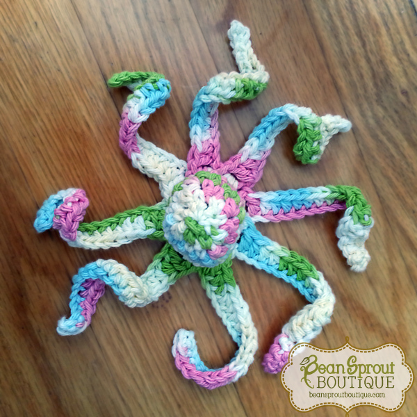 This cute little crochet octopus makes a great teething toy and fun finger puppet. Made from 100% cotton, it's durable and washable. Wet and freeze for extra teething pain relief. Available in a variety of color choices. Comment with preferred color at checkout.