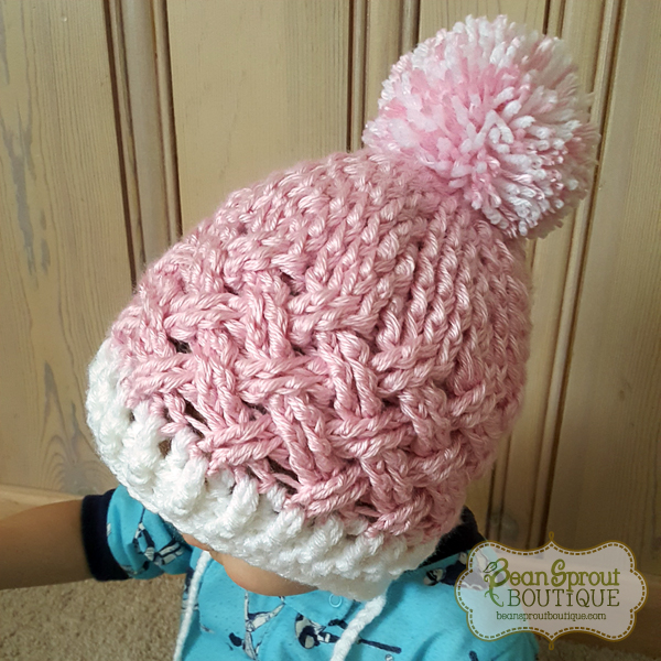 The beautiful woven texture of this crochet hat makes it a popular choice on any head. Chunky yarn makes the Diagonal Weave hat soft and cozy! There are lots of ways to customize this hat. Add a pompom or braided straps. Leave your preference in the comments when ordering.